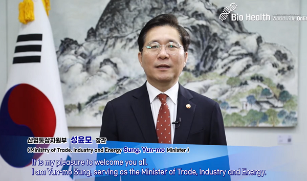 성윤모 산업부 장관은 영상 축사에서 “세계 바이오헬스산업은 연 시장규모 2010년 1540억달러에서 2019년 1조 3천억달러 지난 10년간 눈부시게 발전해왔다”면서, “한국의 바이오헬스 수출액은 올해 1월부터 9월까지 95억4천만 달러로 작년 동기대비 45.6%나 증가했고, 특히 K-방역과 관련된 제품과 솔루션은 해외에서도 많은 호평을 받고 있다”고 강조했다.