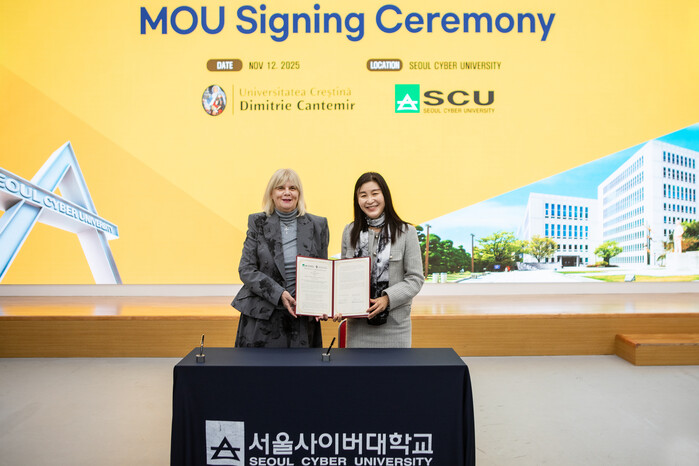 [메가경제=이상원 기자] 서울사이버대학교는 지난 12일 루마니아 드미트리 칸테미르 크리스찬대학(DIMITRIE CANTEMIR CHRISTIAN UNIVERSITY, 이하 DCCU)와 서울사이버대 A동 501호에서 업무협약을 체결했다고 13일 밝혔다.
