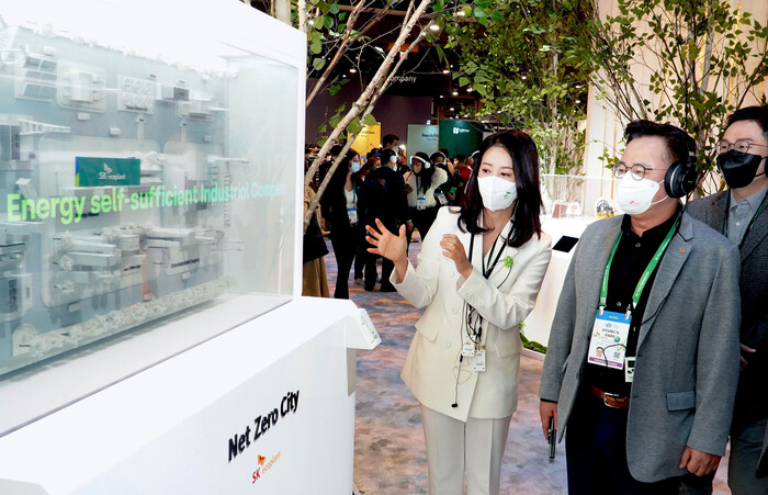 SK에코플랜트는 SK, SK이노베이션, SK텔레콤, SK E&S, SK하이닉스 등 그룹사들과 함께 ‘동행’을 주제로 합동 전시관을 꾸몄다.
