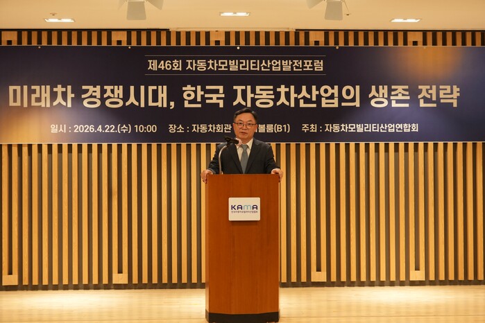 자동차모빌리티산업연합회(KAIA)는 22일 서울 서초구 자동차회관에서 '미래차 경쟁시대, 한국 자동차산업의 생존 전략'을 주제로 제46회 자동차모빌리티산업발전포럼을 개최했다. 이번 포럼은 전기차 시장 경쟁 심화에 따른 국내 생산기반 약화와 부품 생태계 위축 우려를 집중 조명했다.