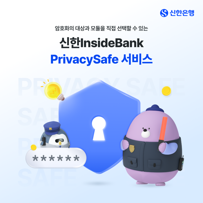 [메가경제=노규호 기자] 신한은행이 신한 인사이드뱅크에 등록된 계좌 및 카드번호 등 고객 추가 정보에 맞춤형 암호화 서비스를 제공하는 ‘프라이버시세이프(PrivacySafe)’를 새롭게 도입했다고 18일 밝혔다.
