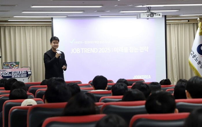 취업전략특강에는 잡코리아 김준수 CHRO(경영지원본부장), 변지성 마케팅커뮤니케이션 팀장이 강연자로 나서 'JOB TREND 2025: 미래를 잡는 전략'을 주제로 발표했다. 특히 자사 AI 매칭 및 추천 서비스를 통해 취업 준비생들의 서류 합격률을 예측하여 피드백해 주고, 합격률이 높은 공고를 추천해주는 서비스와 검색 서비스 고도화 등 취업 성공을 위한 다양한 꿀팁 및 노하우 등을 전달해 좋은 호응을 얻었다. 또 자사 데이터 분석 기반 2025년 취업 트렌드 키워드를 공유하고 최근 기업들의 변화된 채용 방식과 그에 따른 효과적인 자소서 작성 및 면접 전략 등을 전했다.