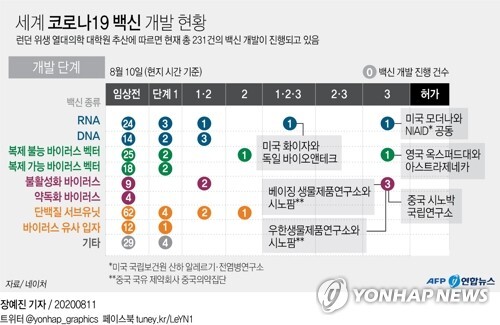 | ▲ 세계 코로나19 백신 개발 현황. [그래픽= 연합뉴스] |