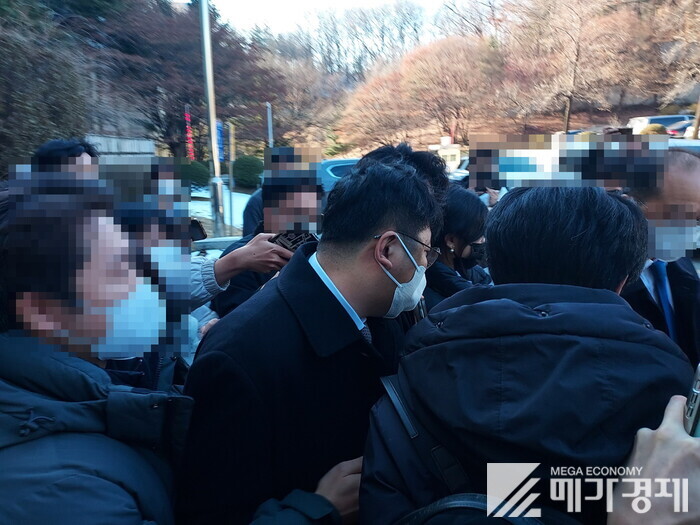 ▲ 이정훈 전 빗썸홀딩스 이사회 의장이 법원을 빠져나가기 위해 차에 오르고 있다. [사진=이석호 기자] |