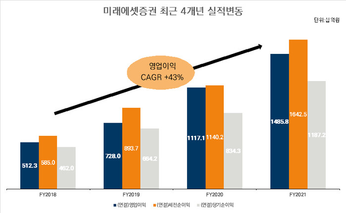 | ▲ 미래에셋증권은 지난해 연결기준 잠정 영업이익 1조 4858억원을 기록하며 역대 최대 실적을 달성했다. [자료=미래에셋증권 제공] |