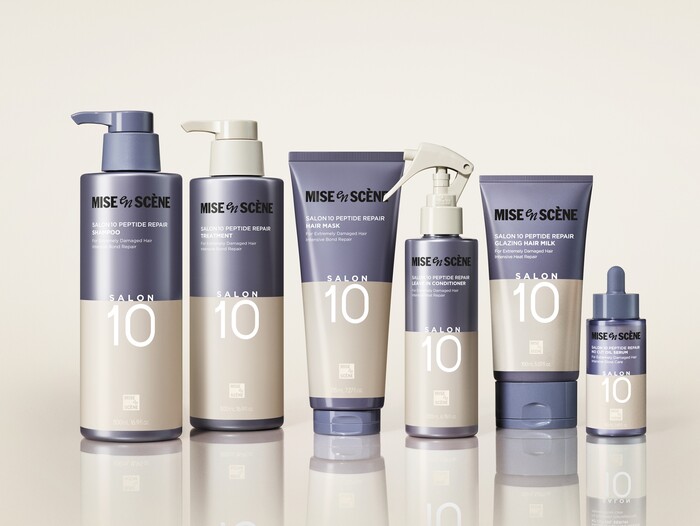 미쟝센 살롱10 펩타이드 리페어 라인은 시술과 열로 손상된 모발을 집에서 케어할 수 있도록 모발 속을 채우고 결합하는 특허 본딩 기술을 적용했다.