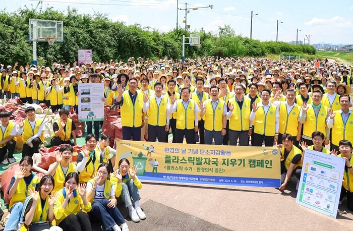 | ▲하나님의 교회 630여명의 봉사자들이 경기 양주 청담체육공원 일대에서 '플라스틱 발자국 지우기' 캠페인 정화 활동을 진행했다. |