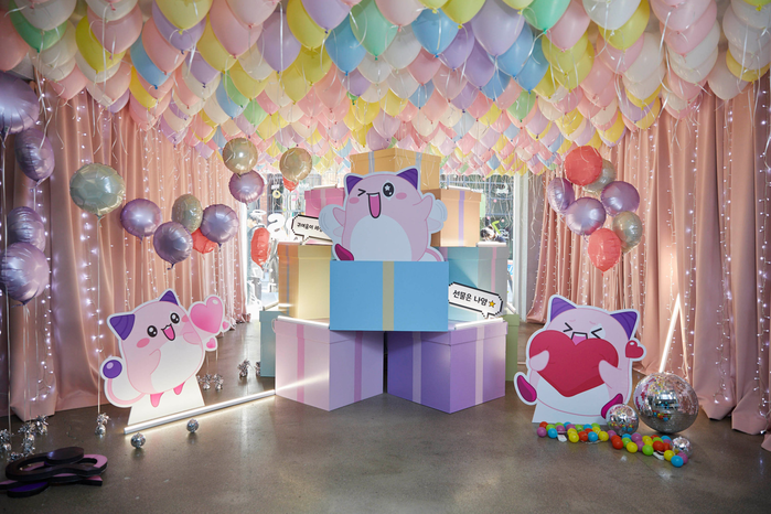 2층엔 굿즈 스토어가 마련됐다. 현실과 게임에서 행운을 불어주는 ‘행운 부적’과 ‘마스킹 테이프’, ‘떡메모지’ 등 그동안 공개되지 않았던 신규 굿즈를 선보인다. 이외에도 ‘몬스터 인형 키링’, ‘장난감 실리콘 컵받침’ 등의 다채로운 굿즈가 판매될 예정이다.