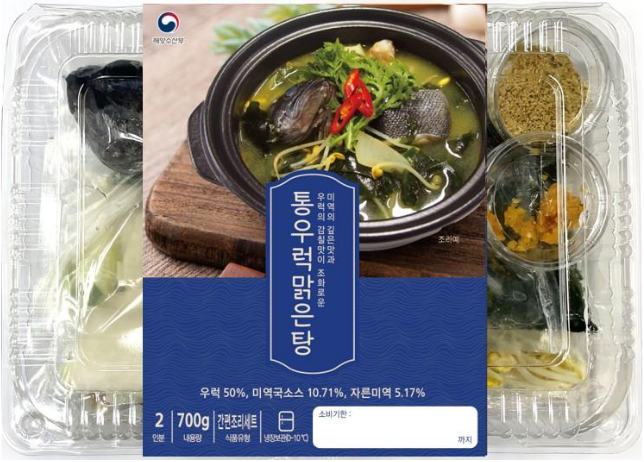 ‘통우럭맑은탕’은 국내산 대표 양식 수산물인 우럭(조피볼락)과 미역을 활용하여 상품화한 것으로, 쫄깃한 식감과 시원한 국물맛이 일품이다.
