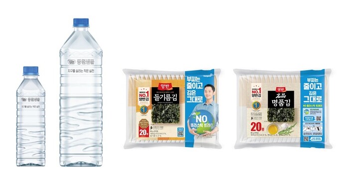▲ '동원샘물 무라벨 패키지', '양반김 에코패키지' [이미지=동원F&B]