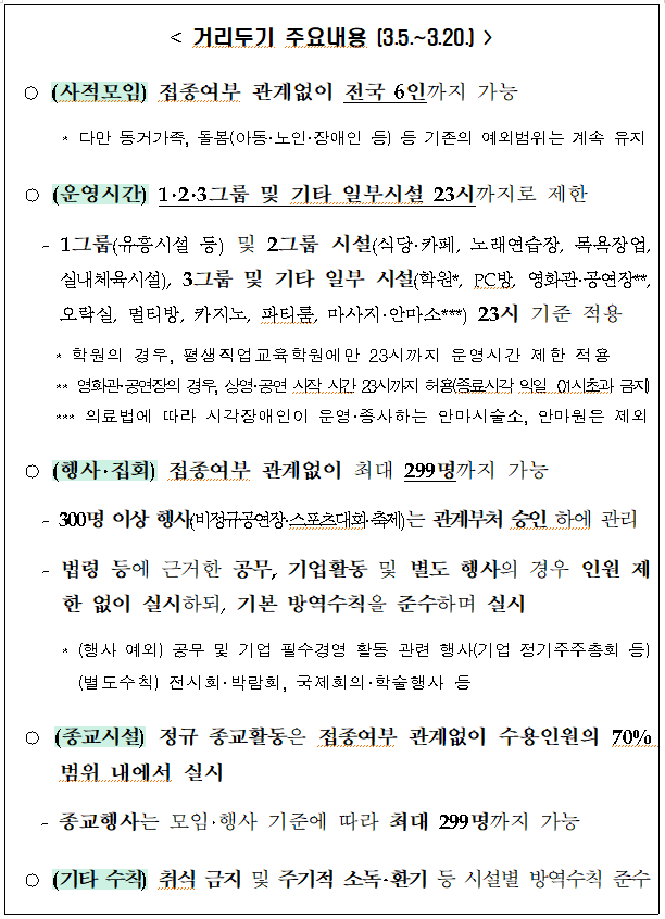 행사·집회는 접종력 관계없이 최대 299명