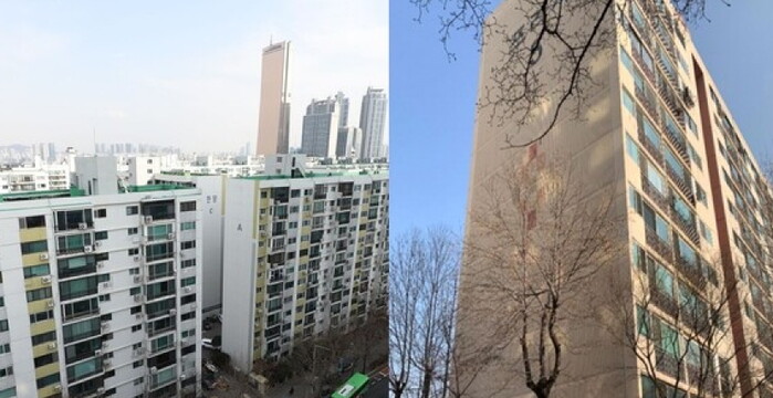 ▲ 대형 건설사들이 수주전에 나선 여의도 한양아파트(왼쪽)와 송파구 가락프라자아파트. [사진=연합뉴스/지지옥션] |