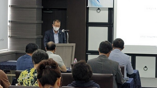 ▲ 안산상공희의소가 개최한 경영인 협의회·리더스 포럼 월례 세미나에서 기업회생절차를 설명하고 있는 법무법인 한마음 차성호 변호사. |
