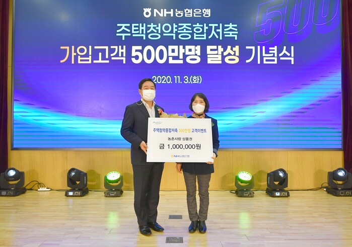 [메가경제= 최낙형 기자] NH농협은행은 지난 3일 서울시 중구 본점에서 주택청약종합저축 가입 고객수 500만명 달성 기념행사를 실시했다고 4일 밝혔다.