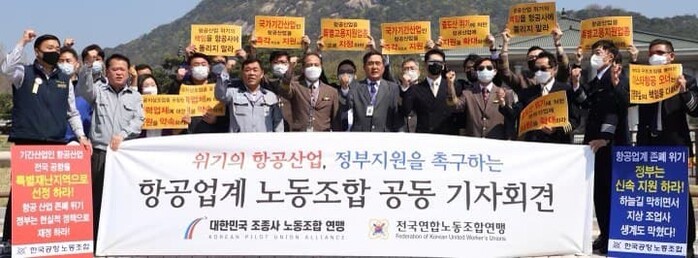 공항과 항공산업에 종사하는 노동자들이 결성한 노동조합이 정부의 고용유지지원금 지급기간을 연장해 달라고 공동으로 호소문을 발표했다.