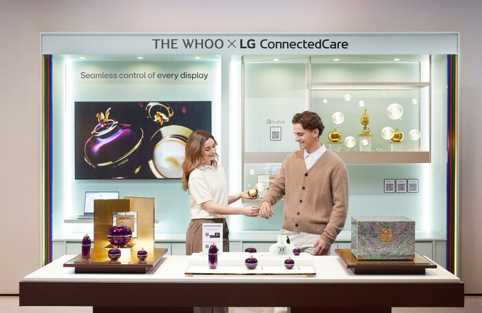 LG생활건강은 ISE 2026 LG전자 전시관 내 리테일 공간에 더후 전용 부스를 마련했다. 136인치 대형 패널과 투명 OLED TV 등 LG전자의 디스플레이 기술을 활용해 한국적 미학을 강조한 브랜드 영상을 상영하고, 환유고를 중심으로 한 제품 체험 행사를 운영했다. 이와 함께 자개 작가 류지안 씨와 협업해 제작한 ‘국빈 세트’ 전시와 SNS 이벤트도 병행했다.