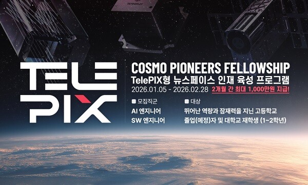 [메가경제=양대선 기자] 우주 AI 종합 솔루션 기업 텔레픽스(TelePIX)가 뉴스페이스 시대의 인재를 키우기 위한 육성 프로그램 ‘우주 개척자 펠로십(Cosmo Pioneers Fellowship)’을 진행한다고 1일 밝혔다.