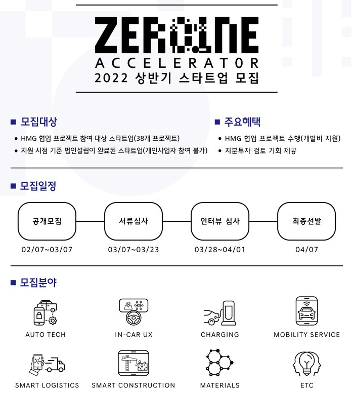 | ▲ 현대자동차그룹 제로원액셀러레이터 2022 스타트업 모집 안내 [현대자동차 그룹 제공] |