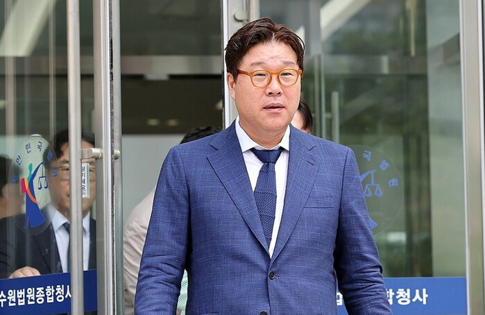 | ▲ 김성태 쌍방울 그룹 전 회장이 12일 오후 선고 공판이 열린 경기도 수원시 영통구 수원지방법원을 나서고 있다. [사진=연합뉴스] |