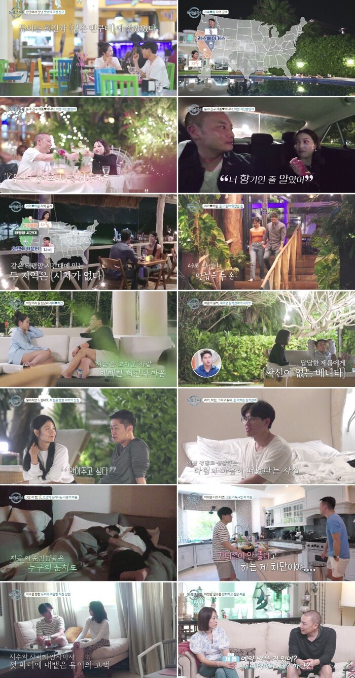 그런가 하면 지난 방송에서 서로를 향한 ‘스파크’를 일으켰던 하림과 리키는 “시애틀에 산다”는 하림의 얘기에 리키가 ‘멘붕’을 일으키며 ‘장거리’임을 직감케 했던 터. 이날 리키는 “캘리포니아 오렌지카운티에 산다”며 시애틀과는 비행기로 3시간 걸리는 거리임을 알렸다. 하지만 하림은 “시차가 같은데, 무슨 장거리냐”면서 “난 네가 뉴욕에 살아도 문제없었을 것”이라고 해, 리키에게 확신을 줬다. 로맨틱한 식사를 마친 두 사람은 자리에서 일어나자마자 손을 맞잡으며 다시금 마음을 확인했다. 급기야, 손을 잡은 채 천천히 ‘돌싱하우스’까지 걸어가, 1호 커플의 탄생을 예감케 했다.