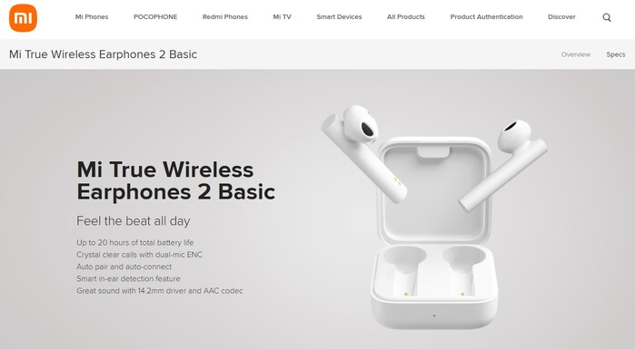 ▲ 샤오미 홈페이지의 무선 이어폰 제품 설명 [샤오미 공식 홈페이지 갈무리] |