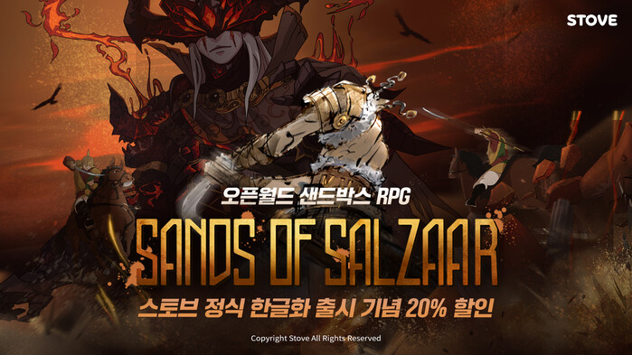 [메가경제=정호 기자] 스마일게이트의 글로벌 소셜 플랫폼 스토브가 오픈월드 전략 액션 RPG ‘샌드 오브 살자르’(개발사 한-스쿼럴 스튜디오)를 한글화해 출시하고 이를 기념해 할인 이벤트를 진행한다고 24일 밝혔다.