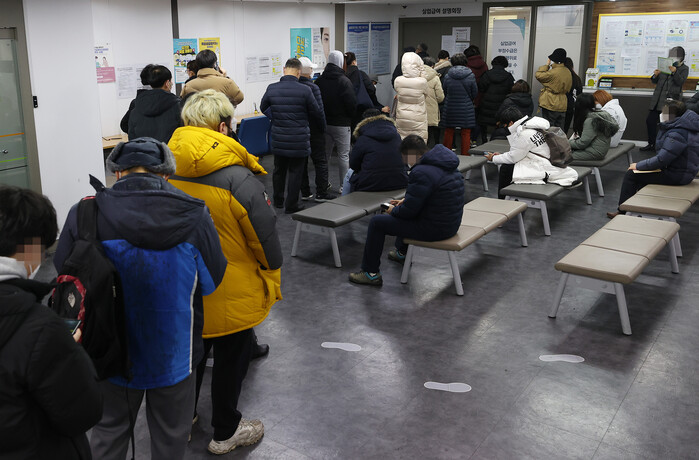 ▲ 코로나19 사태에 따른 지난해 고용시장 충격이 국제통화기금(IMF) 외환위기 이후 가장 나쁜 수준을 기록한 가운데 13일 서울 마포구 서울서부고용복지플러스센터에서 시민들이 실업급여 설명회를 듣기 위해 줄을 서고 있다. [사진= 연합뉴스] |