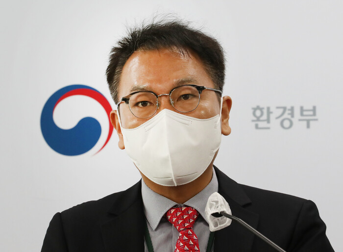 ▲ 황인목 환경부 교통환경과장이 지난 2일 세종시 정부세종청사에서 메르세데스-벤츠코리아와 스텔란티스코리아가 국내에 수입 판매한 경유 차량 6종의 배출가스 불법 조작 적발과 관련해 브리핑하고 있다. [세종=연합뉴스] |