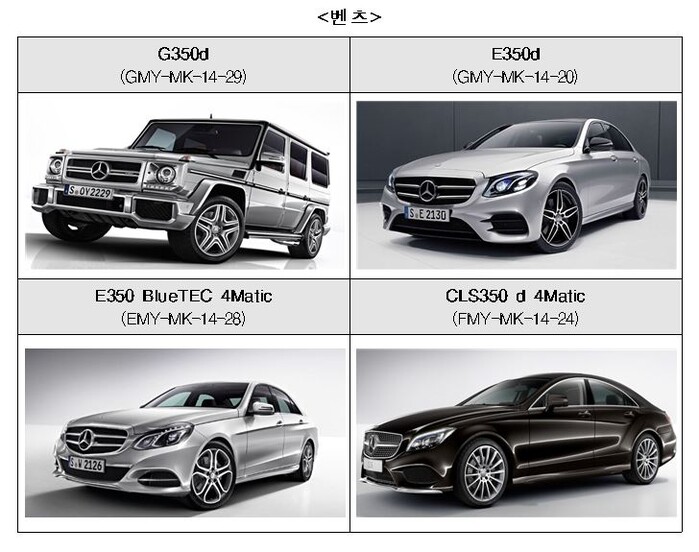 ▲ 벤츠 4종 [자료=환경부] |