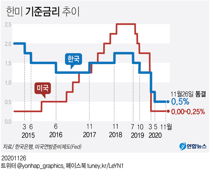 ▲ 한미 기준금리 추이. [그래픽= 연합뉴스]