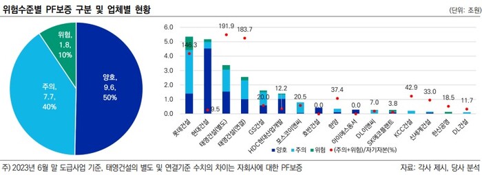 그중 도급사업 PF보증이 1조원을 상회하는 현대건설, 롯데건설, 태영건설, GS건설, HDC현대산업개발의 5개사에 대해 언급했다.