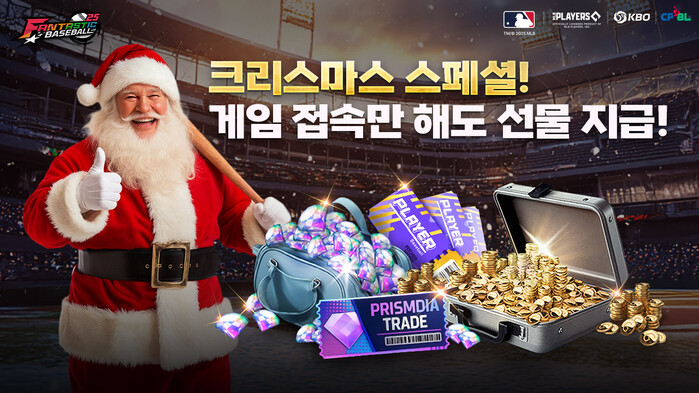 ‘판타스틱 베이스볼’은 12월 24일부터 31일까지 게임에 접속한 이용자에게 ‘리그 선택 올해의 신인 선수 프리즘 다이아 10% 팩’, ‘크리스마스 선물 상자’ 등을 지급한다.
