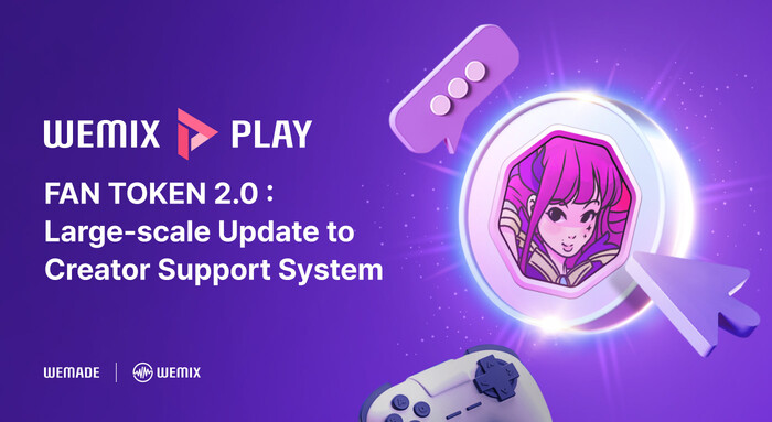 [메가경제=이동훈 기자] 위메이드(대표 장현국)가 팬토큰(Fan Token) 2.0 대규모 업데이트를 4일 실시했다. 팬토큰은 블록체인 게임 플랫폼 위믹스 플레이(WEMIX PLAY)에서 제공 중인 크리에이터 후원 시스템이다.