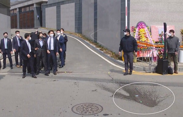 ▲ 24일 오후 대구 달성군 유가읍 쌍계리 박근혜 전 대통령 사저 앞에 40대 남성이 던진 소주병이 깨져 있다. 이 남성은 특수폭행 혐의로 체포됐다. [연합뉴스TV 제공] |