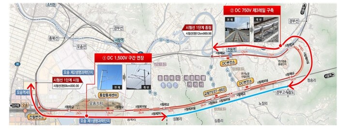 2023년 6월 DC 750V 제3궤조(4.2km) 구간을 새로 설치해, 국내 전력 급전 방식인 AC 25kV, DC 1500V에 더해 모든 열차 전력 방식의 시험이 가능해졌다. 또한 DC 1500V 직류구간을 확장해, 2026년부터 시험선 전 구간에서 DC 차량시험이 가능해진다.