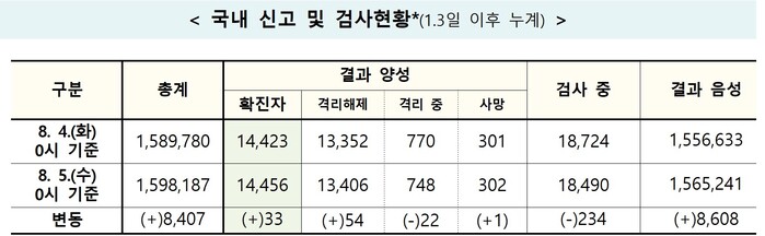 중앙방역대책본부(방대본)는 5일 0시 기준으로, 코로나19 전날 대비 신규 확진자가 33명이 발생해, 지금까지 총 확진자수는 1만4456명이라고 밝혔다.
