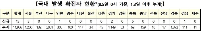 지역별로 국내 코로나19 신규 확진자 15명을 보면 충북이 6명으로 가장 많이 발생했다. 서울 5명, 경기 2명, 인천 1명으로 수도권에서만 확진자수가 10명에 육박했고, 경남에서도 1명이 나왔다.
