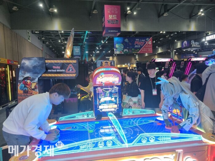 즐길거리가 풍부한 점도 올해 플레이엑스포가 가진 매력으로 알려졌다. 'K-ARCAED 게임 공동관'은 지난해 80규모에서 150부스 규모로 크기를 늘렸다. 펌프를 비롯한 리듬액션 게임과 인형뽑기, 슈팅 액션 등 다양한 오락실 게임을 즐길 수 있는 게 특징이다. 게임을 하며 받은 토큰은 경품으로 교환할 수 있다.