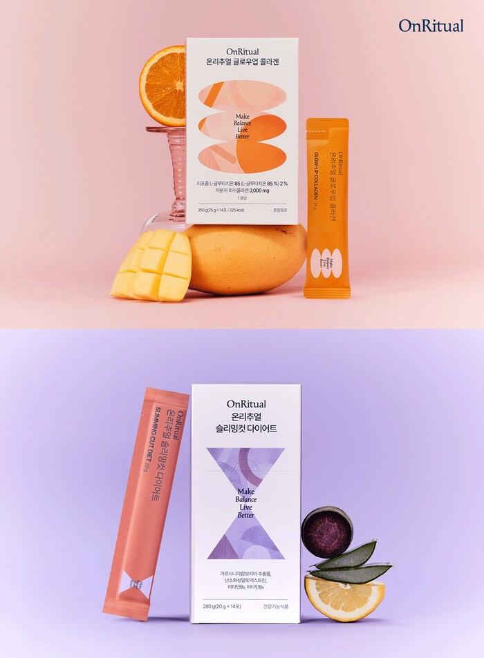 ‘온리추얼 슬리밍컷 다이어트’는 식약처 4중 기능성을 인정받은 제품으로, 식후 혈당 상승 억제·배변활동 개선·체지방 감소에 도움을 주는 난소화성말토덱스트린과 가르시니아 추출물을 함유했다. ‘온리추얼 글로우업 콜라겐’은 저분자 피쉬콜라겐(3,000mg)과 리포좀 글루타치온(500mg)을 배합해 체내 전달력을 높였으며, 엘라스틴·히알루론산·세라마이드 등 피부 건강을 위한 핵심 성분까지 더했다.