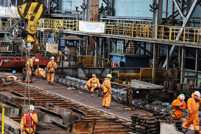 | ▲ 11월 23일 포스코 포항제철소 직원들이 2열연공장 복구작업을 하고 있다 [사진=포스코 제공] |