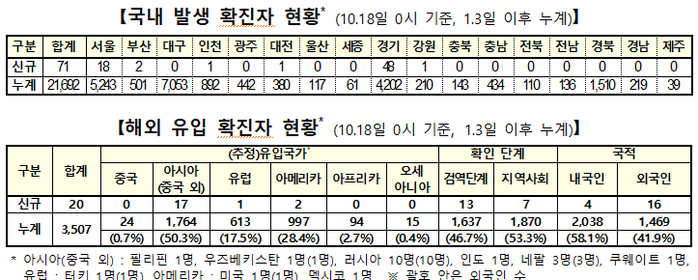 ▲ 18일 0시 기준 코로나19 국내발생 및 해외유입 확진자 현황. [출처= 중앙방역대책본부] |
