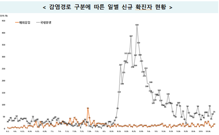 ▲ 코로나19 감염경로 구분에 따른 일별 신규 확진자 현황. [출처= 중앙방역대책본부] |