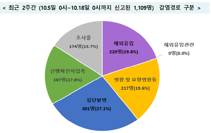 ▲ 최근 2주간 코로나19 감염경로 구분. [출처= 중앙방역대책본부] |