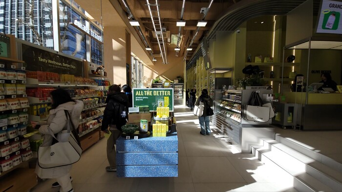 오피스 상권 특성을 고려해 냉장·냉동 간편식과 단백질 제품도 볼 수 있었다. CJ올리브영 관계자는 "간편식의 경우 CJ제일제당의 제품도 선보이고 있다"라며 "점심 시간 직장인들이 간편하게 건강하게 먹을 수 있는 상품 위주로 큐레이션했다"라고 설명했다.