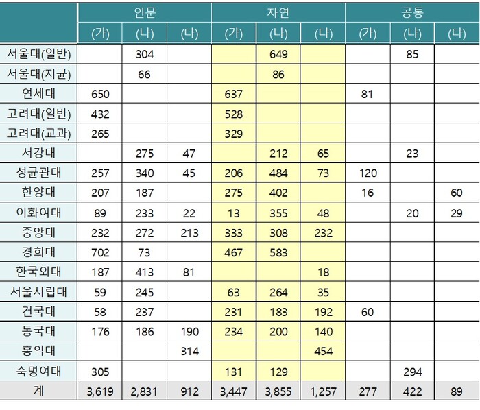 일례로 연세대·고려대는 대부분 모집 단위를 가군에서 운영한다. 이에 두 대학을 동시에 지망하는 학생들은 결국 하나를 선택해야 한다.