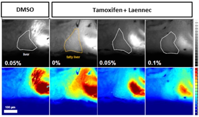 이번 연구는 인간과 높은 유전적 유사성을 가지고 있는 제브라피쉬 모델에서 형광염색으로 염색된 간의 면적과 강도를 히트맵(heat map)을 통해 분석하는 방식으로 진행됐다.