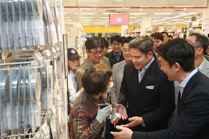 ▲ 5월 3일 오후 현장경영 차 이마트 연수점을 찾은 정용진 신세계 부회장 [사진=이마트] |