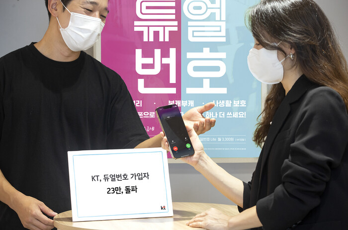 KT는 자사 듀얼 상품(듀얼번호‧듀얼번호Lite) 가입 고객이 23만 명을 넘어섰다고 11일 밝혔다.