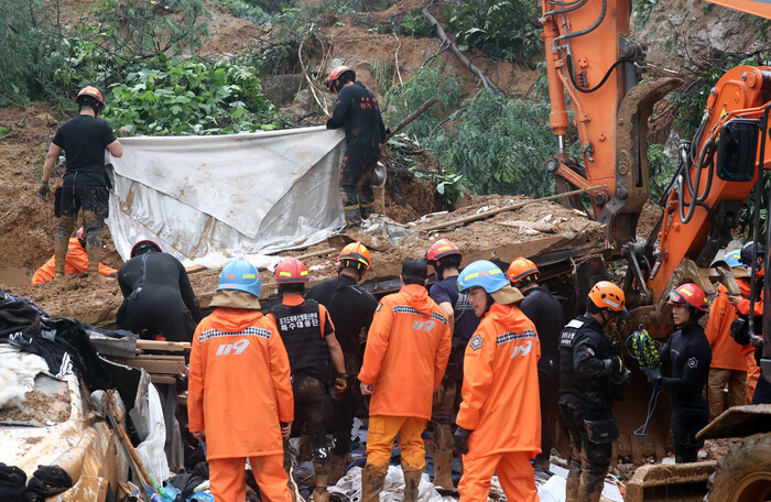 소방 관계자는 "신고 접수 이후 곧바로 소방관 30여명과 장비 20여대를 투입해 구조에 나섰지만 사고 현장에 토사가 수 미터 높이로 쌓여 중장비 없이는 진입이 불가능해 구조작업에 1시간이 넘게 걸렸다"고 말했다.