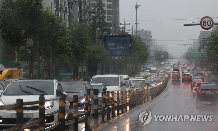 ▲ 동부간선도로 전면통제 여파, 출근길 교통정체.[출처= 연합뉴스] |